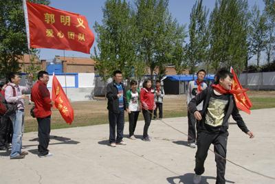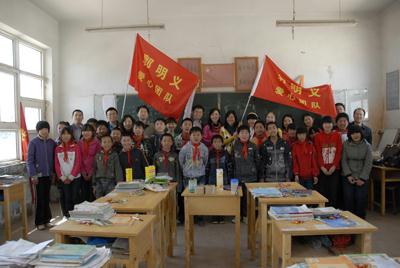 穿過(guò)重重?zé)熿F,沿著唯一一條通向?qū)W校的泥濘公路來(lái)到三河市段甲嶺鎮(zhèn)蔣福山小學(xué)。這里交通閉塞,環(huán)境污染嚴(yán)重,經(jīng)濟(jì)落后,但是這些都沒(méi)有使這里的孩子們放棄求學(xué)的欲望,反而激發(fā)起了大家更強(qiáng)烈的學(xué)習(xí)熱情和改變家鄉(xiāng)的愿望??吹?50多個(gè)孩子稚嫩、純樸、可愛(ài)的笑臉,志愿者們心情非常激動(dòng),紛紛把帶來(lái)的學(xué)習(xí)用品和體育用品送到孩子們手中。隨后,大家來(lái)到課堂上,為孩子們傳授科學(xué)文化知識(shí),回答孩子們提出的問(wèn)題,鼓勵(lì)他們熱愛(ài)學(xué)習(xí),要努力學(xué)習(xí)科學(xué)文化知識(shí),做一個(gè)勇敢、堅(jiān)強(qiáng)、有益于社會(huì)的人。志愿者們?cè)诒硌萘俗跃幍墓?jié)目后,又來(lái)到操場(chǎng)上,和孩子們共同做游戲,并植下了愛(ài)心樹(shù),祝愿孩子們能在社會(huì)各界愛(ài)心人士的幫助下和關(guān)心下茁壯成長(zhǎng),將來(lái)成為社會(huì)主義合格的建設(shè)者和接班人。
