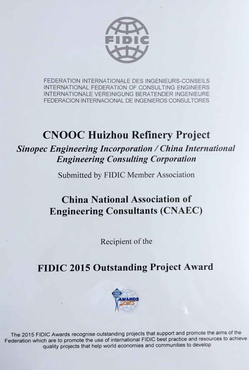 中海油惠州煉油項(xiàng)目工程獲FIDIC獎(jiǎng)(2015年)