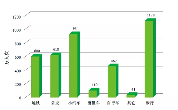 圖2  北京市中心城工作日不同交通方式出行量