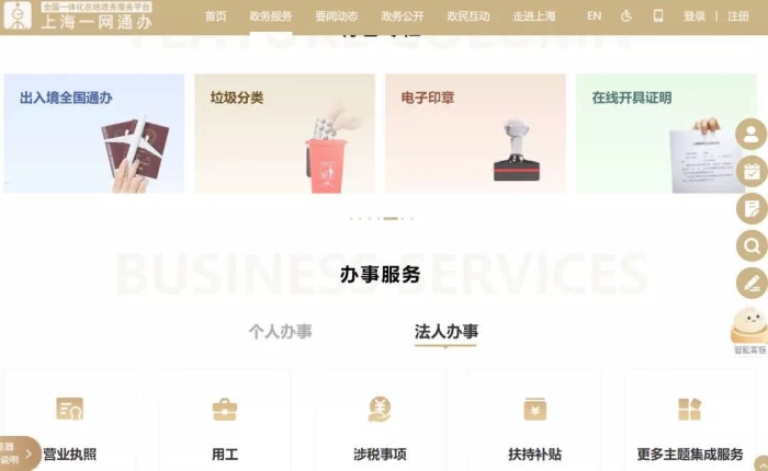 圖1 上?!耙痪W(wǎng)通辦”網(wǎng)站界面