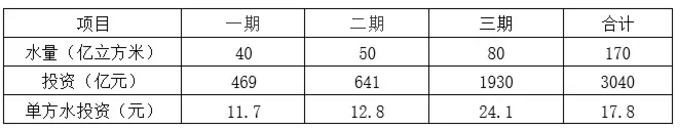 2.在缺水地區(qū)單方水投資比較低,經(jīng)濟上合理可行。南水北調(diào)西線工程在工程的不同階段,都能發(fā)揮調(diào)水效益,規(guī)劃的三期工程投資指標(biāo)(按2000年一季度價格水平估算)見表2。