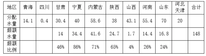 表1 黃河相關(guān)省市水量分配及超額情況表  單位:億立方米