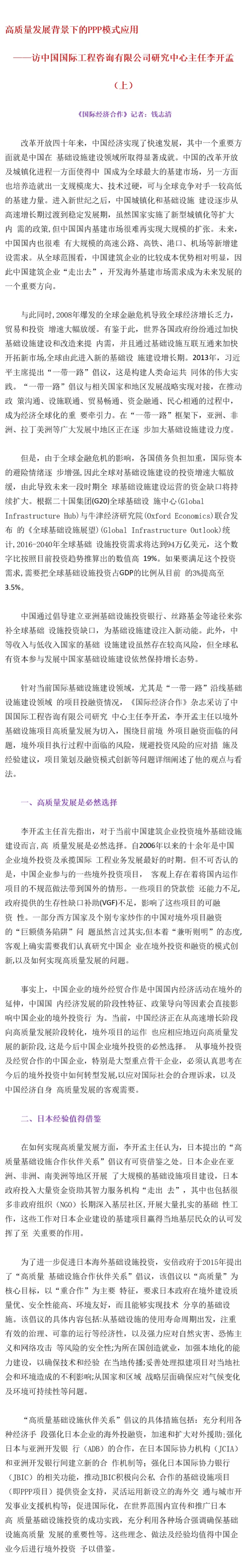 高質(zhì)量發(fā)展背景下的PPP模式應用 ——訪中國國際工程咨詢有限公司研究中心主任李開孟 (上)