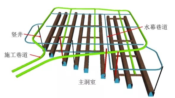 圖4 大型地下水封儲(chǔ)庫(kù)洞室空間布置圖