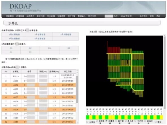 地下水封洞庫(kù)動(dòng)態(tài)設(shè)計(jì)輔助平臺(tái)(DKDAP)建成后,集合了大量的數(shù)據(jù)信息,內(nèi)容涵蓋了工程的咨詢、勘探、設(shè)計(jì)、施工、安全監(jiān)測(cè)、運(yùn)行與管理等全生命周期的工程元素,為工程建設(shè)的過(guò)程控制和決策提供具有實(shí)用價(jià)值的支持和服務(wù)。