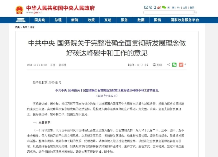 2020年9月,在第七十五屆聯(lián)合國大會一般性辯論上,習近平總書記代表中國向世界莊嚴承諾:二氧化碳排放力爭于2030年前達到峰值,努力爭取2060年前實現(xiàn)碳中和。 一年后,中共中央、國務(wù)院公布了一份重磅文件——《關(guān)于完整準確全面貫徹新發(fā)展理念做好碳達峰碳中和工作的意見》(以下簡稱《意見》)。 這份文件,對習近平承諾的碳達峰、碳中和目標進行了系統(tǒng)謀劃和總體部署。作為未來一個時期內(nèi)指導“雙碳”工作的綱領(lǐng)性文件,這份《意見》相當值得研究學習。