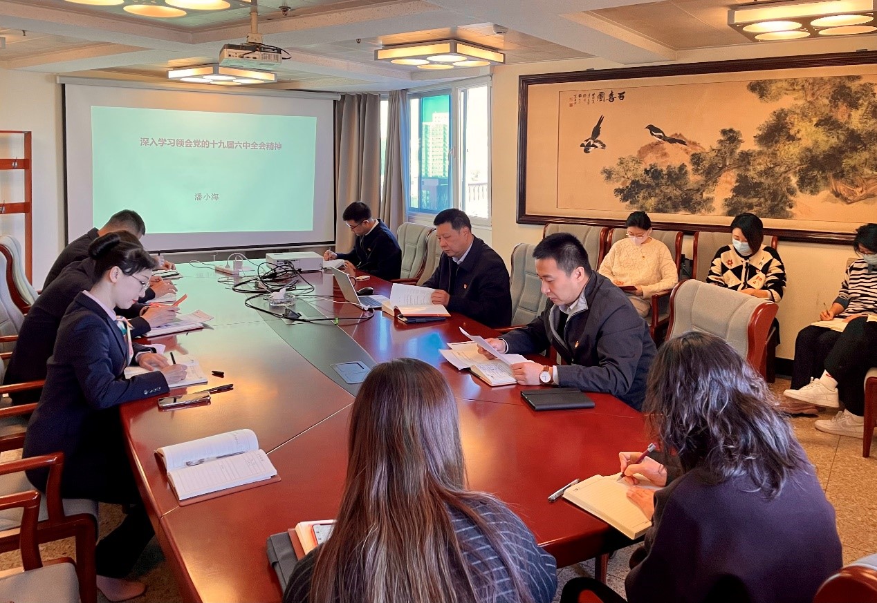 潘小海同志在業(yè)務(wù)發(fā)展部黨支部宣講黨的十九屆六中全會(huì)精神