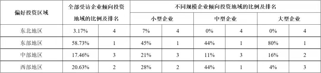 (三)不同規(guī)模企業(yè)的投資區(qū)域偏好差異分析