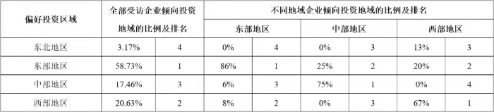 (二)不同地域企業(yè)的投資區(qū)域偏好差異分析