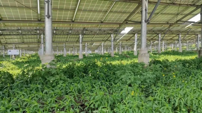 貴州六盤水盤州鵝毛寨光伏電站農(nóng)光互補項目(光伏+中草藥種植)。(攝影:劉太平)