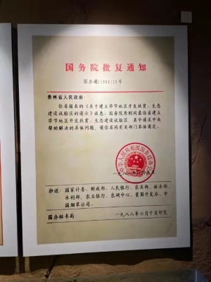 海雀村保留的國(guó)務(wù)院設(shè)立畢節(jié)試驗(yàn)區(qū)批復(fù)件