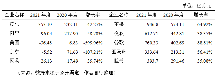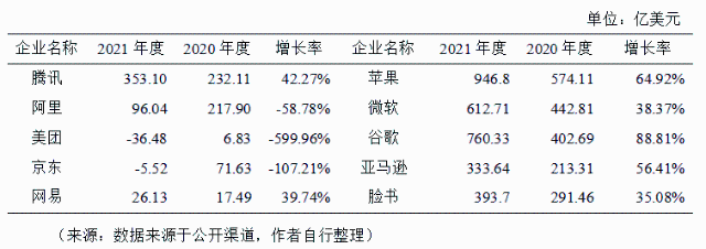 近年來我國數(shù)字經(jīng)濟規(guī)模整體呈現(xiàn)持續(xù)擴大趨勢,2005年我國數(shù)字經(jīng)濟規(guī)模為2.6萬億元,2021年擴張至45.5萬億元,在GDP中占比由14.2%提升至39.8%,市場規(guī)模位居全球第二,已經(jīng)成為名副其實的數(shù)字經(jīng)濟“大國”。然而,當前面臨的數(shù)字經(jīng)濟增速放緩、頭部平臺企業(yè)市值下滑、營收不高、利潤率下滑、新增獨角獸企業(yè)數(shù)量下降等現(xiàn)象暴露出我國數(shù)字經(jīng)濟發(fā)展動能有所減弱,需引起高度重視。 01 數(shù)字經(jīng)濟創(chuàng)新發(fā)展動能減弱的幾個表現(xiàn) (一)數(shù)字經(jīng)濟增速出現(xiàn)放緩。近年來,在全球地緣局勢緊張、疫情反復及強監(jiān)管的影響下,我國數(shù)字經(jīng)濟的增長勢頭出現(xiàn)了放緩。數(shù)據(jù)表明,2014年~2018年間,我國數(shù)字經(jīng)濟的平均增速接近20%,2019年~2021年間,數(shù)字經(jīng)濟的平均增速為13.8%,尤其是2020年,增速僅為9.6%,較上一年下滑5.9個百分點。2021年同比名義增長16.2%,但與2017~2018年間連續(xù)維持20%以上的名義增速,2002年~2018年間實現(xiàn)了208倍的歷史跨越相比,仍存在下滑趨勢。 圖1 2014-2021年我國數(shù)字經(jīng)濟增速 來源:數(shù)據(jù)來源于公開渠道,作者自行整理 (二)頭部數(shù)字平臺企業(yè)市值下滑嚴重。截至2022年3月底,我國平臺企業(yè)中市值排名前5位的依次是騰訊、阿里、美團、京東和網(wǎng)易,其中騰訊市值4594億美元,同比下降39.78%,阿里市值2949億美元,同比下降52.59%,美團市值1228億美元,同比下降46.32%,下滑幅度均超過三分之一。美國平臺企業(yè)中市值排名前5位的依次是蘋果、微軟、谷歌、亞馬遜和臉書,其中蘋果市值28500億美元,同比上漲38.96%,微軟市值23110億美元,同比上漲29.98%,谷歌市值18420億美元,同比上漲32.23%,上漲幅度均超過四分之一。過去的一年間,中美互聯(lián)網(wǎng)平臺企業(yè)的市值差距越來越大。 表1 中美前5大數(shù)字平臺企業(yè)市值對比 (三)頭部數(shù)字平臺企業(yè)營收整體不高。營業(yè)收入方面,2021年度我國平臺企業(yè)營收實現(xiàn)增長。其中京東營業(yè)收入1475.01億美元,同比增長27.59%,阿里營業(yè)收入1322.33億美元,同比增長18.93%,騰訊營業(yè)收入868.17億美元,同比增長16.19%;美國平臺企業(yè)中亞馬遜營業(yè)收入4698億美元,同比增長21.7%,蘋果營業(yè)收入3658億美元,同比增長33.44%,谷歌營業(yè)收入2575億美元,同比增長41.21%。我國京東、阿里的營業(yè)收入均不足亞馬遜的三分之一,且我國前5大平臺企業(yè)差距較大,美團和網(wǎng)易的營業(yè)收入僅為277.61億美元和135.79億美元,我國前5大平臺企業(yè)的平均營業(yè)收入不足美國前5大平臺企業(yè)的30%。 表2 中美前5大數(shù)字平臺企業(yè)營業(yè)收入對比 (四)頭部數(shù)字平臺企業(yè)利潤出現(xiàn)持續(xù)下滑。利潤方面,2021年度我國平臺企業(yè)利潤下滑嚴重,其中美團和京東出現(xiàn)了凈虧損。具體來看,美團虧損36.48億美元,同比下降599.96%,京東虧損5.52億美元,同比下降107.21%,阿里凈利潤為96.04億美元,同比下降58.78%;美國平臺企業(yè)中蘋果凈利潤946.8億美元,同比增長64.92%,谷歌凈利潤760.33億美元,同比增長88.81%,微軟凈利潤612.71億美元,同比增長38.37%,亞馬遜和臉書的凈利潤均超過300億美元。我國前5大平臺企業(yè)的平均凈利潤不足美國前5大平臺企業(yè)的15%。 表3 中美前5大數(shù)字平臺企業(yè)利潤對比 (五)頭部數(shù)字平臺企業(yè)營收結(jié)構側(cè)重消費者業(yè)務。收入結(jié)構方面,我國前5大平臺企業(yè)更依賴電商、游戲、外賣等面向消費者的業(yè)務,企業(yè)營收仍集中在國內(nèi)市場,美國前5大平臺企業(yè)更依賴智能云服務、硬件服務和電商,面向更廣闊的全球市場。 表4 中美前5大平臺企業(yè)收入結(jié)構對比 (六)獨角獸企業(yè)數(shù)量增長明顯減速。無論是獨角獸企業(yè)的新增數(shù)量還是準獨角獸企業(yè)的形成數(shù)量,我國都滯后于美國甚至印度。2018年以來的中美貿(mào)易摩擦以及2021年初以來的平臺經(jīng)濟“強監(jiān)管”政策都加速了新增獨角獸公司的數(shù)量的全球分化。根據(jù)最新榜單,中國的新興獨角獸公司有27家,落后于印度的32家,2021年中國新增獨角獸企業(yè)僅3家,明顯落后于美國的132家。在全球數(shù)字經(jīng)濟的競爭格局中“不進則退”。 圖2 2010~2021年中美新增獨角獸企業(yè)對比 來源:數(shù)據(jù)來源于公開渠道,作者自行整理 02 正確認識和把握數(shù)字經(jīng)濟的幾個關系 (一)在持續(xù)發(fā)展中實現(xiàn)安全。面對安全和發(fā)展,要把發(fā)展擺在首位,是第一要務,通過發(fā)展來解決安全問題。從國際競爭的角度來說,數(shù)字經(jīng)濟發(fā)展放緩就意味著國家的安全隱患增加。涉及個人隱私和國家信息安全的問題,可以利用技術發(fā)展來尋求解決的辦法,比如區(qū)塊鏈就在智能合約中發(fā)揮著重要作用,區(qū)塊鏈技術把可能出現(xiàn)的造假都從技術上堵住了,又如保護個人隱私問題,有了隱私計算技術就可以實現(xiàn)對數(shù)據(jù)“可用而不可見”,既保護個人隱私又讓數(shù)據(jù)得以流通和使用。故而,當經(jīng)濟和技術發(fā)展起來后,可以利用技術來解決安全問題。此外,在考慮數(shù)據(jù)安