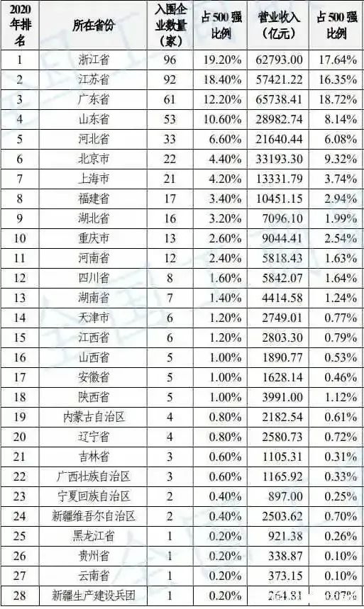 表1 2021年中國(guó)民營(yíng)經(jīng)濟(jì)五百?gòu)?qiáng)榜單