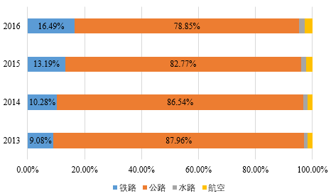 圖2  近六年旅客運輸結(jié)構(gòu)變化情況