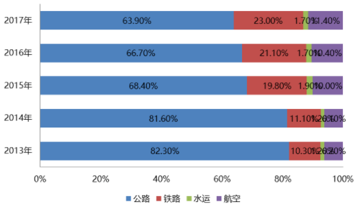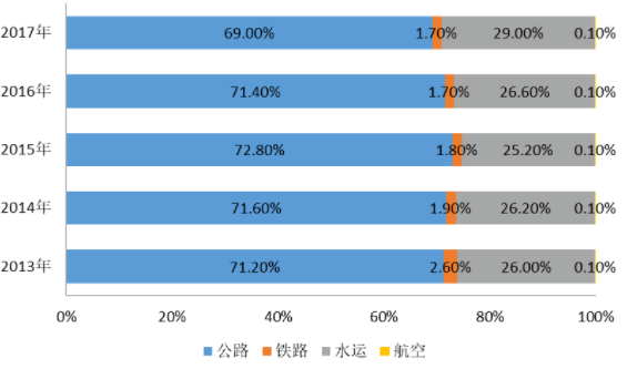 2018年3月國務(wù)院印發(fā)《打贏藍(lán)天保衛(wèi)戰(zhàn)三年行動計劃》和10月國務(wù)院辦公廳發(fā)布《推進(jìn)運輸結(jié)構(gòu)調(diào)整三年行動計劃(2018-2020年)的通知》。國內(nèi)貨物運輸逐漸向鐵路、水運方向調(diào)整,宏觀調(diào)控政策取得一定成效。