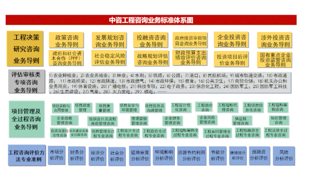 深化工程咨詢理論方法創(chuàng)新研究 構(gòu)建工程咨詢業(yè)務(wù)規(guī)范標(biāo)準(zhǔn)體系 中國(guó)國(guó)際工程咨詢有限公司 研究中心黨支部 標(biāo)準(zhǔn)化是國(guó)家現(xiàn)代化的重要基石,沒(méi)有標(biāo)準(zhǔn)化就沒(méi)有現(xiàn)代化,更沒(méi)有高質(zhì)量發(fā)展。習(xí)近平總書記在中國(guó)共產(chǎn)黨第二十次全國(guó)代表大會(huì)上莊嚴(yán)宣告:“從現(xiàn)在起,中國(guó)共產(chǎn)黨的中心任務(wù)就是團(tuán)結(jié)帶領(lǐng)全國(guó)各族人民全面建成社會(huì)主義現(xiàn)代化強(qiáng)國(guó)、實(shí)現(xiàn)第二個(gè)百年奮斗目標(biāo),以中國(guó)式現(xiàn)代化全面推進(jìn)中華民族偉大復(fù)興?!敝袊?guó)式現(xiàn)代化是堅(jiān)持人民至上、堅(jiān)持自信自立、堅(jiān)持守正創(chuàng)新、堅(jiān)持問(wèn)題導(dǎo)向、堅(jiān)持系統(tǒng)觀念、堅(jiān)持胸懷天下的現(xiàn)代化,是立足新發(fā)展階段,完整、準(zhǔn)確、全面貫徹新發(fā)展理念,構(gòu)建新發(fā)展觀格局,實(shí)現(xiàn)高質(zhì)量發(fā)展的現(xiàn)代化,是推進(jìn)中國(guó)標(biāo)準(zhǔn)化事業(yè)高質(zhì)量發(fā)展不斷取得新成效的現(xiàn)代化。高質(zhì)量發(fā)展是全面建設(shè)社會(huì)主義現(xiàn)代化國(guó)家的首要任務(wù),也是中咨公司在新時(shí)代再出發(fā)、再發(fā)展、再輝煌的必然要求。一流的企業(yè)做標(biāo)準(zhǔn),二流的企業(yè)做品牌,三流的企業(yè)做產(chǎn)品。中咨公司按照新時(shí)代新要求推動(dòng)工程咨詢理念創(chuàng)新,打造工程咨詢產(chǎn)業(yè)鏈鏈長(zhǎng),創(chuàng)建世界一流咨詢機(jī)構(gòu),對(duì)咨詢業(yè)務(wù)規(guī)范標(biāo)準(zhǔn)體系建設(shè)提出了更高要求。根據(jù)中咨公司建設(shè)國(guó)家高端智庫(kù)和世界一流咨詢機(jī)構(gòu)戰(zhàn)略規(guī)劃目標(biāo)要求,研究新時(shí)代中咨公司如何推動(dòng)工程咨詢理論方法體系創(chuàng)新,構(gòu)建符合工程咨詢產(chǎn)業(yè)鏈鏈長(zhǎng)和世界一流咨詢機(jī)構(gòu)使命要求的工程咨詢業(yè)務(wù)規(guī)范標(biāo)準(zhǔn)體系,是公司結(jié)合自身實(shí)際深入學(xué)習(xí)貫徹黨的二十大精神必須深入研究的重大課題。 一、研究制定標(biāo)準(zhǔn)體系是高質(zhì)量發(fā)展的必然要求 (一)標(biāo)準(zhǔn)化是實(shí)現(xiàn)經(jīng)濟(jì)社會(huì)高質(zhì)量發(fā)展的必然要求 1.高質(zhì)量發(fā)展需要標(biāo)準(zhǔn)化提供支撐 “標(biāo)準(zhǔn)是人類文明進(jìn)步的成果”。習(xí)近平總書記在慶祝第39屆國(guó)際標(biāo)準(zhǔn)化組織(ISO)大會(huì)召開的賀信中指出:“從中國(guó)古代的‘車同軌、書同文’,到現(xiàn)代工業(yè)規(guī)?;a(chǎn),都是標(biāo)準(zhǔn)化的生動(dòng)實(shí)踐。伴隨著經(jīng)濟(jì)全球化深入發(fā)展,標(biāo)準(zhǔn)化在便利經(jīng)貿(mào)往來(lái)、支撐產(chǎn)業(yè)發(fā)展、促進(jìn)科技進(jìn)步、規(guī)范社會(huì)治理中的作用日益凸顯。標(biāo)準(zhǔn)已成為世界‘通用語(yǔ)言’。世界需要標(biāo)準(zhǔn)協(xié)同發(fā)展,標(biāo)準(zhǔn)促進(jìn)世界互聯(lián)互通?!?/span> 新中國(guó)成立以來(lái),我國(guó)標(biāo)準(zhǔn)化事業(yè)經(jīng)歷了從起步探索、開放發(fā)展到全面提升的光輝歷程,標(biāo)準(zhǔn)供給更加多元高效,標(biāo)準(zhǔn)體系日趨完善,標(biāo)準(zhǔn)技術(shù)水平和國(guó)際化程度明顯提升,標(biāo)準(zhǔn)化效益不斷顯現(xiàn),全社會(huì)標(biāo)準(zhǔn)化意識(shí)持續(xù)增強(qiáng)。與此同時(shí),我國(guó)標(biāo)準(zhǔn)化還存在標(biāo)準(zhǔn)有效供給不足、標(biāo)準(zhǔn)實(shí)施應(yīng)用不夠、標(biāo)準(zhǔn)國(guó)際化水平亟待提高等問(wèn)題。在新發(fā)展階段,以習(xí)近平新時(shí)代中國(guó)特色社會(huì)主義思想為指導(dǎo),更應(yīng)深入學(xué)習(xí)領(lǐng)會(huì)習(xí)近平總書記“標(biāo)準(zhǔn)助推創(chuàng)新發(fā)展,標(biāo)準(zhǔn)引領(lǐng)時(shí)代進(jìn)步”的重要論斷,強(qiáng)調(diào)只有高標(biāo)準(zhǔn)才有高質(zhì)量,沒(méi)有高標(biāo)準(zhǔn)就沒(méi)有現(xiàn)代化,要將新發(fā)展理念貫徹到標(biāo)準(zhǔn)化工作的各個(gè)環(huán)節(jié)和所有方面,充分發(fā)揮標(biāo)準(zhǔn)在引領(lǐng)高質(zhì)量發(fā)展和推動(dòng)實(shí)現(xiàn)中國(guó)式現(xiàn)代化偉大事業(yè)中的重要作用。 2.標(biāo)準(zhǔn)化建設(shè)應(yīng)以高質(zhì)量發(fā)展為目標(biāo)導(dǎo)向 黨的二十大報(bào)告強(qiáng)調(diào)在推動(dòng)中國(guó)式現(xiàn)代化建設(shè)的偉大事業(yè)中,要“加快構(gòu)建新發(fā)展格局,著力推動(dòng)高質(zhì)量發(fā)展”。在實(shí)現(xiàn)高質(zhì)量發(fā)展的具體行動(dòng)中,無(wú)論是完整、準(zhǔn)確、全面貫徹新發(fā)展理念,還是著力構(gòu)建高水平社會(huì)主義市場(chǎng)經(jīng)濟(jì)體制,建設(shè)現(xiàn)代化產(chǎn)業(yè)體系,全面推進(jìn)鄉(xiāng)村振興,促進(jìn)區(qū)域協(xié)調(diào)發(fā)展,推進(jìn)高水平對(duì)外開放,都需要高質(zhì)量的標(biāo)準(zhǔn)體系來(lái)提供支撐保障。習(xí)近平總書記強(qiáng)調(diào),“中國(guó)將積極實(