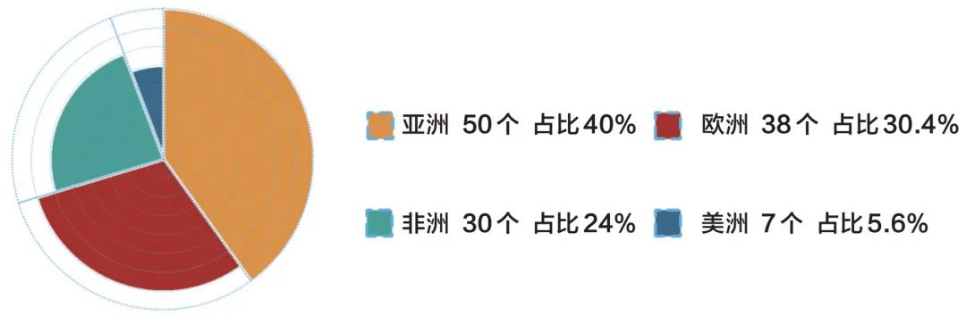 根據(jù)中咨公司數(shù)據(jù)庫(kù)統(tǒng)計(jì),截至 2022 年底,中國(guó)境外經(jīng)貿(mào)合作區(qū)達(dá)到125家。其中,112家位于“一帶一路”共建國(guó)家,占比超89.6%。