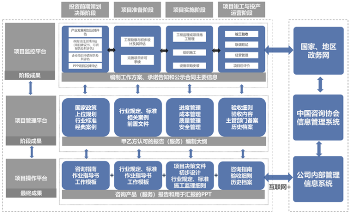 項(xiàng)目管理平臺。結(jié)合工作方案、上位規(guī)劃、國家重大政策和行業(yè)標(biāo)準(zhǔn)、前后置文件、相關(guān)案例、工作模板等,按照承擔(dān)的工程項(xiàng)目,編制經(jīng)甲乙雙方認(rèn)可的項(xiàng)目咨詢(服務(wù))報(bào)告大綱。