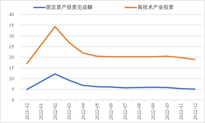 圖4  高技術產(chǎn)業(yè)投資增速對比整體投資增速