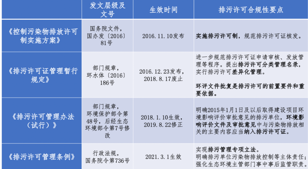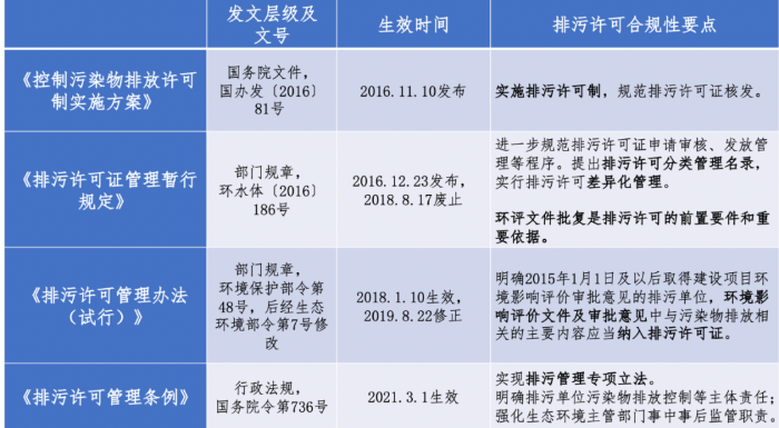 表2  排污許可手續(xù)沿革及合規(guī)性要點