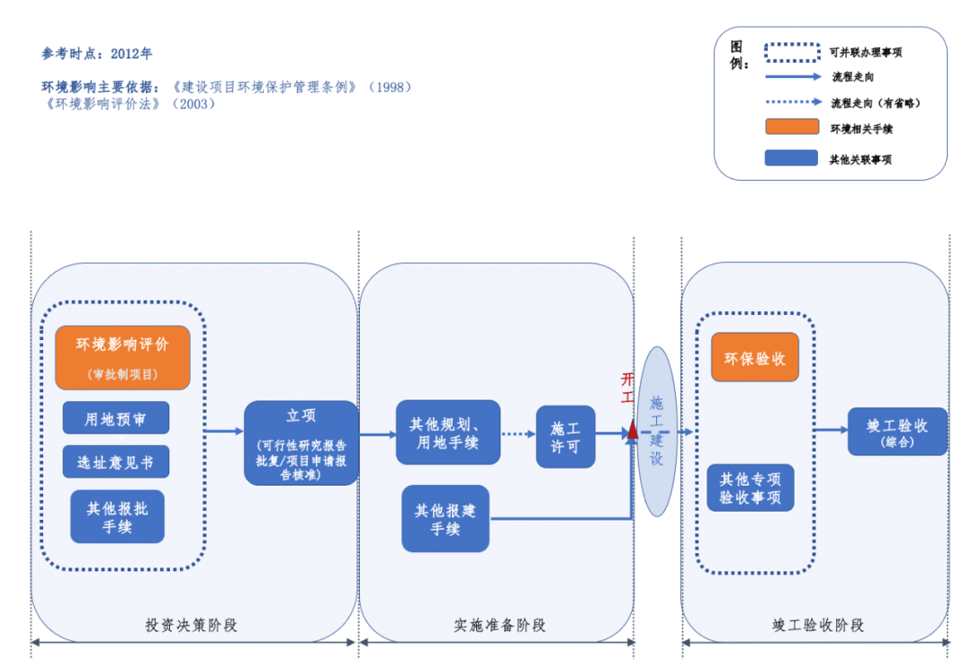圖1 環(huán)境手續(xù)要點及與其他事項的關聯(lián)(2012年)