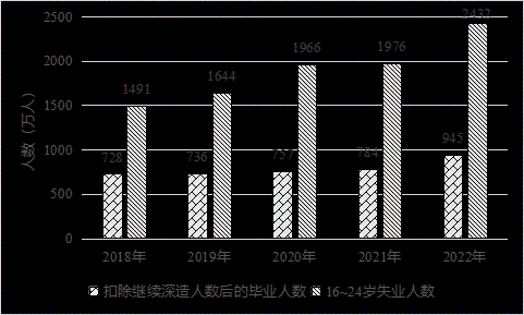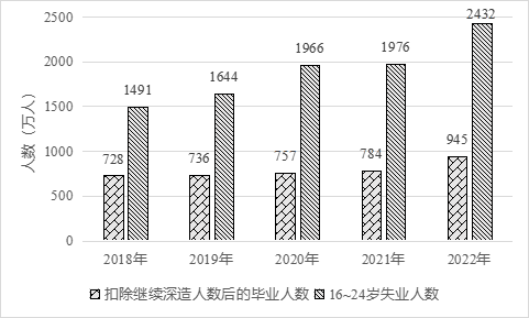 (二)供需錯配進一步加劇失業(yè)風險。一是部分行業(yè)用人需求出現(xiàn)萎縮。根據(jù)普查數(shù)據(jù),有近50%的青年人就業(yè)主要集中在制造業(yè)、批發(fā)零售、住宿餐飲等行業(yè),但是近年來受疫情沖擊,居民消費需求恢復緩慢,住宿餐飲等服務(wù)行業(yè)收縮明顯,同時勞動密集型制造業(yè)與低端制造外遷,致使其吸納就業(yè)能力下降,對青年群體尤其是低學歷青年就業(yè)形成拖累。二是畢業(yè)生供給持續(xù)創(chuàng)新高。每年高校畢業(yè)生人數(shù)都在持續(xù)遞增,2023年高校畢業(yè)生已經(jīng)達到1158萬人,比本世紀初高出十倍之多,剔除考公、考研、出國的人數(shù),預估仍將有950萬應屆生進入職場,激烈程度每年只增不減。再加上近年外國留學人員回國求職人數(shù)上升,進一步增加了青年求職群體的就業(yè)壓力。三是結(jié)構(gòu)性矛盾突出。一方面,青年學生就業(yè)觀不實際。很多畢業(yè)生對就業(yè)環(huán)境、行業(yè)、城市的期望與實際勞動力市場提供的條件存有落差,青年不再愿意入職傳統(tǒng)的制造業(yè)工廠,甚至出現(xiàn)“3000元工廠招不到藍領(lǐng)工人,寫字樓卻可以招到大學生”的說法。并且近年來越來越多畢業(yè)生競爭有限的公職崗位,耽誤了最佳的就業(yè)時機。另一方面,知識和能力跟不上需求。在信息密集型服務(wù)業(yè)、知識密集型服務(wù)業(yè)等領(lǐng)域,眾多低學歷青年的知識儲備和能力無法滿足企業(yè)要求。此外,當前高校的教育與社會需求脫節(jié),導致人才培養(yǎng)滯后于產(chǎn)業(yè)結(jié)構(gòu)調(diào)整和市場需求變化。