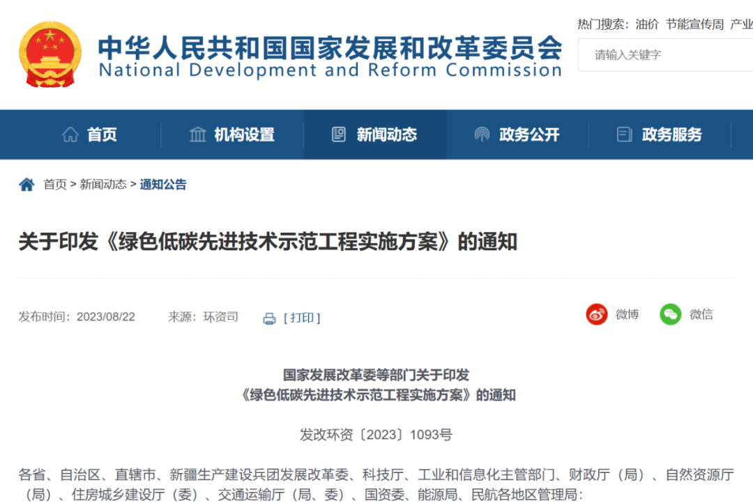 綠色低碳先進(jìn)技術(shù)的研發(fā)、推廣和應(yīng)用是推動(dòng)如期實(shí)現(xiàn)碳達(dá)峰碳中和目標(biāo)的關(guān)鍵一環(huán)。在習(xí)近平總書記提出碳達(dá)峰碳中和目標(biāo)三周年即將來臨之際,國(guó)家發(fā)展改革委等十部門聯(lián)合印發(fā)《綠色低碳先進(jìn)技術(shù)示范工程實(shí)施方案》(發(fā)改環(huán)資〔2023〕1093號(hào),以下簡(jiǎn)稱《方案》),明確提出了綠色低碳先進(jìn)技術(shù)示范工程重點(diǎn)方向、保障措施、組織實(shí)施方式等,指向清晰、措施有力、操作性強(qiáng),對(duì)推進(jìn)經(jīng)濟(jì)社會(huì)發(fā)展全面綠色低碳轉(zhuǎn)型,加快綠色低碳技術(shù)產(chǎn)業(yè)化進(jìn)程具有十分重要的意義。