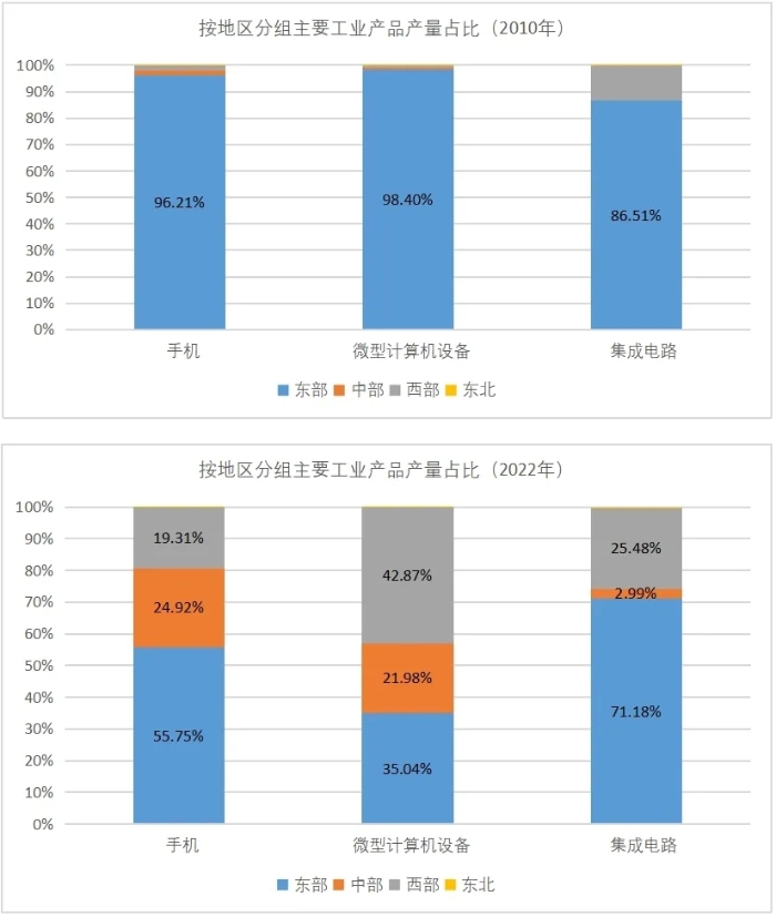 圖1 2010-2022年我國(guó)分區(qū)域電子信息類(lèi)主要產(chǎn)品產(chǎn)量占比