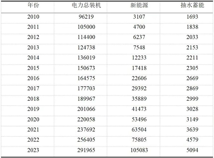 表1 我國(guó)電力、新能源和抽水蓄能裝機(jī)規(guī)模(單位:萬(wàn)kW)