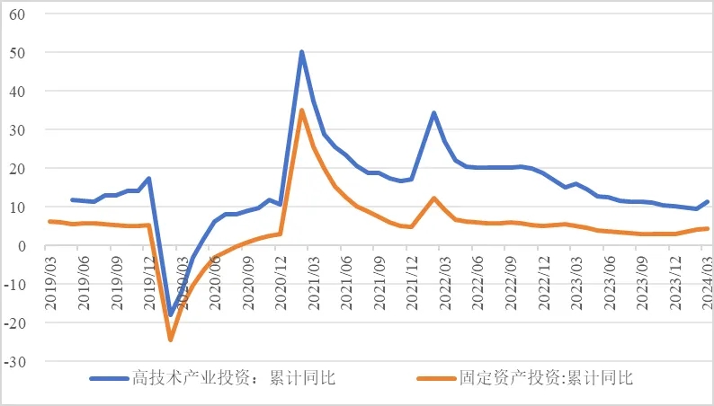 今年以來,我國經(jīng)濟發(fā)展質(zhì)效穩(wěn)步提升,投資結(jié)構(gòu)不斷優(yōu)化,投資對發(fā)展的關(guān)鍵作用持續(xù)發(fā)揮。但受房地產(chǎn)投資低迷等因素影響,整體投資增速較上年同期有所放緩,民間投資活力仍待激發(fā)。下階段,需適時推進及用好中央預(yù)算內(nèi)資金、萬億增發(fā)國債、地方政府專項債、超長期特別國債等政策工具,大規(guī)模推動制造業(yè)設(shè)備更新,持續(xù)激發(fā)民間投資活力,多措并舉消化存量房產(chǎn),積極擴大有效益的投資,促進經(jīng)濟平穩(wěn)健康發(fā)展。 一、一季度整體投資增速保持平穩(wěn) 2024年一季度,我國固定資產(chǎn)投資(不含農(nóng)戶)同比增長4.5%,增速較上年同期下降0.6個百分點。建安工程、設(shè)備工器具購置分別增長4.6%、17.6%,設(shè)備工器具購置投資增速明顯高于建安工程投資增速,較2023年全年提高11個百分點,說明技術(shù)改造升級和設(shè)備更新市場潛力巨大,體現(xiàn)技術(shù)水平的設(shè)備工器具投入增長加快。 圖1 全國固定資產(chǎn)投資增速(%) 數(shù)據(jù)來源:國家統(tǒng)計局,Wind數(shù)據(jù)庫 (一)在資金支持和政策推動下,基礎(chǔ)設(shè)施投資支撐有力。今年2月底前,上年四季度增發(fā)的1萬億國債已全部下達(dá),各地加快增發(fā)國債項目的開工建設(shè),基礎(chǔ)設(shè)施投資穩(wěn)定增長。一季度基礎(chǔ)設(shè)施投資同比增長6.5%,較1—2月加快0.2個百分點,拉動全部投資增長1.4個百分點。其中,完成水利基礎(chǔ)設(shè)施投資1933億元,同比增長4.4%,為歷史同期最多;完成交通固定資產(chǎn)投資7205億元,同比增長13.3%;截至2月底全國能源重點項目完成投資約2680億元,同比增長17.2%。新型基礎(chǔ)設(shè)施建設(shè)穩(wěn)步發(fā)展,“雙千兆”網(wǎng)絡(luò)部署有序推進,累計建成5G基站364.7萬個,5G用戶普及率突破60%,千兆城市達(dá)到207個,梯次算力基礎(chǔ)設(shè)施架構(gòu)加快構(gòu)建。 表1 1—3月我國各行業(yè)固定資產(chǎn)投資情況 數(shù)據(jù)來源:國家統(tǒng)計局,Wind數(shù)據(jù)庫 (二)高技術(shù)產(chǎn)業(yè)投資繼續(xù)發(fā)揮引領(lǐng)帶動作用。一季度,制造業(yè)投資同比增長9.9%,拉動全部投資增長2.4個百分點。41個工業(yè)大類行業(yè)中,電子、汽車等37個行業(yè)增加值保持增長,增長面較去年擴大22個百分點。工業(yè)領(lǐng)域大規(guī)模設(shè)備更新和消費品以舊換新政策加快釋放市場空間,汽車銷量同比增長10.6%,家電類商品消費同比增長5.8%。3月,制造業(yè)采購經(jīng)理指數(shù)(PMI)回升到景氣區(qū)間,達(dá)到了50.8%。 圖2 三大領(lǐng)域固定資產(chǎn)投資增速(累計同比,%) 數(shù)據(jù)來源:國家統(tǒng)計局,Wind數(shù)據(jù)庫 一季度高技術(shù)產(chǎn)業(yè)投資同比增長11.4%,其中高技術(shù)制造業(yè)和高技術(shù)服務(wù)業(yè)投資分別增長10.8%、12.7%。新興產(chǎn)業(yè)加快發(fā)展,3D打印設(shè)備、服務(wù)機器人產(chǎn)量分別增長40.6%、26.7%;創(chuàng)新成果不斷涌現(xiàn),300兆瓦級F級重型燃?xì)廨啓C首臺樣機總裝下線;人工智能與制造業(yè)深度融合,全國已建成近萬家數(shù)字化車間和智能工廠,已培育421家國家級智能制造示范工廠;生產(chǎn)性服務(wù)業(yè)發(fā)展提速,信息傳輸、軟件和信息技術(shù)服務(wù)業(yè)增加值增長13.7%。新興產(chǎn)業(yè)典型產(chǎn)品呈現(xiàn)較快增長勢頭,一季度太陽能電池增長20.1%,與光伏相關(guān)的多晶硅、單晶硅增速超過50%,新能源汽車產(chǎn)銷分別增長28.2%、31.8%。 圖3 高技術(shù)產(chǎn)業(yè)投資增速對比整體投資增速 (累計同比,%) 數(shù)據(jù)來源:國家統(tǒng)計局,Wind數(shù)據(jù)庫 (三)房地產(chǎn)投資仍然低迷,支持房地產(chǎn)穩(wěn)定發(fā)展政策效果逐漸顯現(xiàn)。一季度,全國房地產(chǎn)開發(fā)投資22082億元,同比下降9.5%。其中,住宅投資16585億元,下降10.5%。房地產(chǎn)開發(fā)投資占固定資產(chǎn)投資完成額的比重降至22.07%,較上年同期下降2.14個百分點。房屋施工面積、房屋新開工面積等先行指標(biāo)均出現(xiàn)明顯下滑,分別同比下降11.1%、27.8%。3月,國房景氣指數(shù)為92.07,連續(xù)第四個月下降。一線城市二手住宅銷售價格環(huán)比下降0.7%,二、三線城市二手住宅銷售價格均環(huán)比下降0.5%,國內(nèi)大中城市房價仍呈持續(xù)下降趨勢。 今年以來,各地加大了支持房地產(chǎn)穩(wěn)定發(fā)展的政策力度,包括降低貸款利率、放松限購、住房“以舊換新”等,一季度我國新建商品房銷售面積和銷售額比1—2月降幅分別收窄了1.1、1.7個百分點。去年中央金融工作會議后,中央及各地加大了保障性住房建設(shè)、“平急兩用”公共基礎(chǔ)設(shè)施建設(shè)、城中村改造等“三大工程”推進力度,積極構(gòu)建房地產(chǎn)新發(fā)展模式。國家統(tǒng)計局?jǐn)?shù)據(jù)顯示,“三大工程”拉動房地產(chǎn)投資0.6個百分點,政策舉措成效顯著。 (四)區(qū)域投資形勢整體向好,東北地區(qū)投資增速領(lǐng)先。2024年一季度,我國東北地區(qū)一批重大項目加快落地,投資大幅增長9.6%,較全國水平高了5.1個百分點;京津冀、長三角、粵港澳大灣區(qū)等動力源地區(qū)經(jīng)濟較快增長,東部地區(qū)投資同比增長5.7%,較