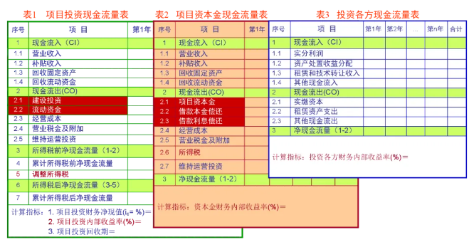 圖4 項目盈利能力分析的三個現(xiàn)金流量表
