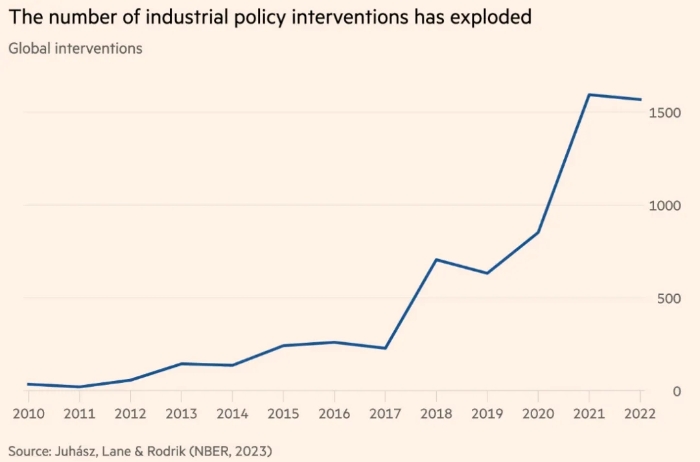 摘要:6月19日,《金融時報》發(fā)布首席經(jīng)濟評論員馬丁·沃爾夫(MARTIN WOLF)撰寫的題為《如何不盲目制定產(chǎn)業(yè)政策》的評論文章,批判了特朗普和拜登政府實施的產(chǎn)業(yè)政策,表示政客們應(yīng)該承認(rèn),在充滿猜疑、保護主義和干涉主義的新時代,可能會損失多少。文章建議,盡管意識形態(tài)向民族主義和干預(yù)主義的根本轉(zhuǎn)變很難遏制,但是實施產(chǎn)業(yè)政策最明智的方式是盡可能精準(zhǔn)地針對已發(fā)現(xiàn)的問題,同時盡量減少對國際合作、貿(mào)易開放和國內(nèi)經(jīng)濟表現(xiàn)的破壞性副作用。 產(chǎn)業(yè)政策再次成為政府干預(yù)的強大動力。世界許多地方都是如此。但最引人注目的轉(zhuǎn)變發(fā)生在美國。羅納德·里根宣稱: “英語中最可怕的九個字是:我是政府派來的,我來幫忙?!比缃?,拜登政府正在熱情地“提供幫助”。唐納德·特朗普也是一個干涉主義者,不同之處在于,他的幫助方式是提高關(guān)稅。鑒于美國歷史上作為開放世界經(jīng)濟的倡導(dǎo)者的角色,這種轉(zhuǎn)變意義重大。 有證據(jù)表明,產(chǎn)業(yè)政策作為一種理念和實踐都變得更加普遍。國際貨幣基金組織去年 1 月發(fā)布的《產(chǎn)業(yè)政策回歸數(shù)據(jù)》顯示,過去十年,商業(yè)媒體中對產(chǎn)業(yè)政策的提及顯著增加。美國國家經(jīng)濟研究局發(fā)表的一篇關(guān)于《產(chǎn)業(yè)政策的新經(jīng)濟學(xué)》的論文由雷卡·尤哈斯、內(nèi)森·萊恩和丹尼·羅德里克共同撰寫,論文顯示,全球產(chǎn)業(yè)政策干預(yù)措施急劇增加,從2017年的228項增加到2022年的1568項——主要是在高收入國家(可能是因為它們有更多的財政空間)。這也讓世界其他國家指責(zé)它們虛偽。(見圖1) 圖1 產(chǎn)業(yè)政策的重要性急劇上升 經(jīng)濟學(xué)家認(rèn)為,這種干預(yù)有三個合理理由。第一個理由涉及“外部性”,即企業(yè)提供的無償利益。最明顯的外部性來自工人和其他企業(yè)從中學(xué)到的東西。此外還存在國家安全和其他社會外部性。第二個理由涉及協(xié)調(diào)和集聚失?。阂虼?,如果多家企業(yè)聯(lián)合起來創(chuàng)業(yè),它們可能會生存下來,但如果單獨創(chuàng)業(yè),可能沒有一家企業(yè)能夠生存下去。最后一個理由涉及公共產(chǎn)品的供應(yīng),尤其是特定地點的公共產(chǎn)品,如基礎(chǔ)設(shè)施。請注意,至關(guān)重要的是,這些都不是保護的理由。正如我上周指出的那樣,保護不是實現(xiàn)這些更廣泛的社會目標(biāo)的糟糕方式。 如果產(chǎn)業(yè)政策能夠?qū)⒔?jīng)濟結(jié)構(gòu)朝著有利的方向改變,那么它就是有效的。不幸的是,這種嘗試可能會失敗,原因眾所周知。缺乏信息是其中之一。被一系列特殊利益集團控制是另一個原因。因此,政府可能無法挑選出贏家,而輸家卻可能成功挑選出政府。擺在桌面上的錢越多,后者就越有可能成真。 圖2 實施產(chǎn)業(yè)政策依據(jù)不同的理由 然而,產(chǎn)業(yè)政策是可以奏效的。在2021年彼得森國際經(jīng)濟研究所的一份出版物中,加里·赫夫鮑爾 (Gary Hufbauer) 和 鄭惠珍(音譯)(Euijin Jung)認(rèn)為“最突出的成功是美國技術(shù)資助機構(gòu) DARPA”。因此,成功的創(chuàng)新政策是可能的?;诘攸c的區(qū)域政策有時也奏效。 但失敗并不是唯一的風(fēng)險,成功也是如此。產(chǎn)業(yè)政策有可能引發(fā)國際報復(fù)。韓國利用保護國內(nèi)市場作為補貼出口的間接方式,從而創(chuàng)造了成功的新產(chǎn)業(yè)。但它是一個受美國保護的小國。對于大國來說,必須考慮國際影響。美國和歐盟近期針對中國清潔能源技術(shù)的快速發(fā)展出臺了系列加稅制裁和反補貼政策,對經(jīng)濟超級大國之間的關(guān)系造成了不利影響。 圖3 產(chǎn)業(yè)政策影響一系列關(guān)鍵技術(shù)和行業(yè)部門 如今,最引人注目的新產(chǎn)業(yè)政策是拜登政府的產(chǎn)業(yè)政策。德克薩斯大學(xué)奧斯汀分校的激進經(jīng)濟學(xué)家詹姆斯·K·加爾布雷斯在分析中指出,“幾十年來,美國首次擁有了一項看似合理的產(chǎn)業(yè)政策模擬”。但這不是真的:因此,“美國政府已經(jīng)失去了在技術(shù)和相關(guān)科學(xué)前沿集中果斷努力的能力”。拜登的《通脹削減法案》有多個目標(biāo),從促進本地制造到降低排放。這是有問題的。加爾布雷斯希望美國變得更激進地干預(yù)。如果美國要干預(yù),就必須更具戰(zhàn)略性。真的可以嗎? 那么,應(yīng)該如何評價美國產(chǎn)業(yè)政策轉(zhuǎn)變?特朗普右翼勢力又希望恢復(fù)19世紀(jì)末和20世紀(jì)初的高關(guān)稅。 圖4 產(chǎn)業(yè)政策干預(yù)措施數(shù)量呈爆炸式攀升 答案是,現(xiàn)在至少有三種兩黨立場:懷念制造業(yè)、對抗中國崛起、對美國自己制定的國際規(guī)則漠不關(guān)心。這是一個新世界,國際貿(mào)易秩序可能很快就會達到臨界點。實施產(chǎn)業(yè)政策最明智的方式是盡可能精準(zhǔn)地針對已發(fā)現(xiàn)的問題,同時盡量減少對國際合作、貿(mào)易開放和國內(nèi)經(jīng)濟表現(xiàn)的破壞性副作用。遺憾的是,這種情況不太可能會結(jié)束,就像1930年代的情況一樣。正如以前經(jīng)常發(fā)生的那樣,意識形態(tà