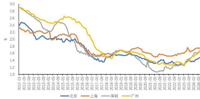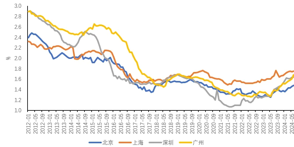 若要將全國去化周期降至18個月,預計需要資金超過5萬億元,此次中國人民銀行3000億元保障性住房再貸款預計帶動5000億元銀行存款,具有較強的信號作用。預計政府收儲將以小戶型存量新房為主,集中于高庫存且保障性住房缺口較大的城市,但目前政策存在三大堵點:第一,收儲要求地方政府的資金支持,但目前除了部分一二線城市具有加杠桿空間外,多數(shù)地方政府加杠桿能力有限;第二,部分城市成本收益不匹配導致項目推進有難度,保障性住房再貸款政策利率1.75%,考慮商業(yè)銀行運營成本和房屋裝修成本預計要求收購成本在2.75%以上,這就對配租型保障性住房的租金回報率有一定要求,而2024年6月上海、深圳、廣州、北京的二手房租金回報率分別僅為1.75%、1.64%、1.68%、1.48%,租金無法覆蓋利息支出及運營維護成本,除非收購價格在6折以下;第三,保障性住房需求與商品房庫存之間存在錯位,2023年人口凈流入城市主要是廣州、東莞、成都、蘇州、佛山、武漢、杭州等一二線城市,這就意味著保障性住房缺口大的也是這些城市,而去庫存緊迫性高的是三四線城市。因此,本輪政府收儲去庫存的效果可能弱于上一輪棚改貨幣化政策。