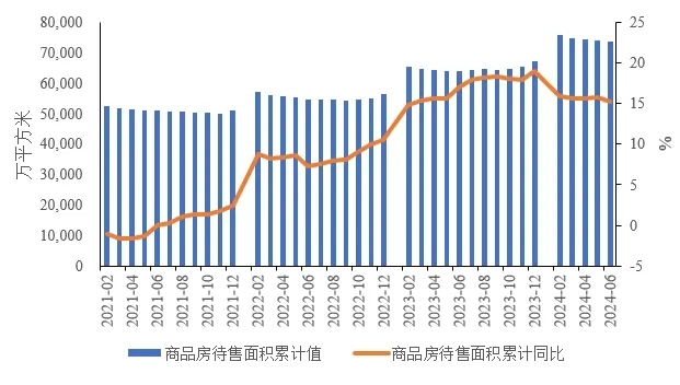 2024年上半年,房地產(chǎn)行業(yè)基本面仍處于下行階段,但得益于短期從中央到地方利好新政刺激,銷售面積、金額同比降幅略有收窄,新開工、竣工止跌企穩(wěn),6月市場開始出現(xiàn)“筑底”信號,但這不是拐點信號,市場仍處于下行階段。2024年1-6月,全國商品房銷售面積4.79億平米,同比下降19.0%;商品房銷售額4.71萬億元,同比下降25.0%;從6月單月數(shù)據(jù)來看,商品房銷售面積為1.13億平方米,環(huán)比上漲52.5%;商品房銷售額為1.15萬億元,環(huán)比上漲50.9%。截至2024年6月末,商品房待售面積73894萬平方米,同比增長15.2%,其中,住宅待售面積增長23.5%,庫存壓力嚴峻。1-6月,中指355城住宅土地成交面積和金額分別同比下降38.1%和44.3%;房屋新開工面積3.80億平方米,同比下降23.7%;房屋竣工面積2.65億平方米,同比下降21.8%。本輪房地產(chǎn)去庫存面臨更大壓力,去化周期2024年6月已達到23.8個月。房價深度調(diào)整,截至2024年6月連續(xù)26個月負增長,根據(jù)中原領(lǐng)先指數(shù)可知,目前一線城市二手房房價平均降幅達25%。國家金融監(jiān)管總局數(shù)據(jù)顯示,今年5月份首套房貸平均利率3.45%,二套房貸平均利率3.9%,分別比上年同期下降0.55和1個百分點,達到2008年以來的最低值。