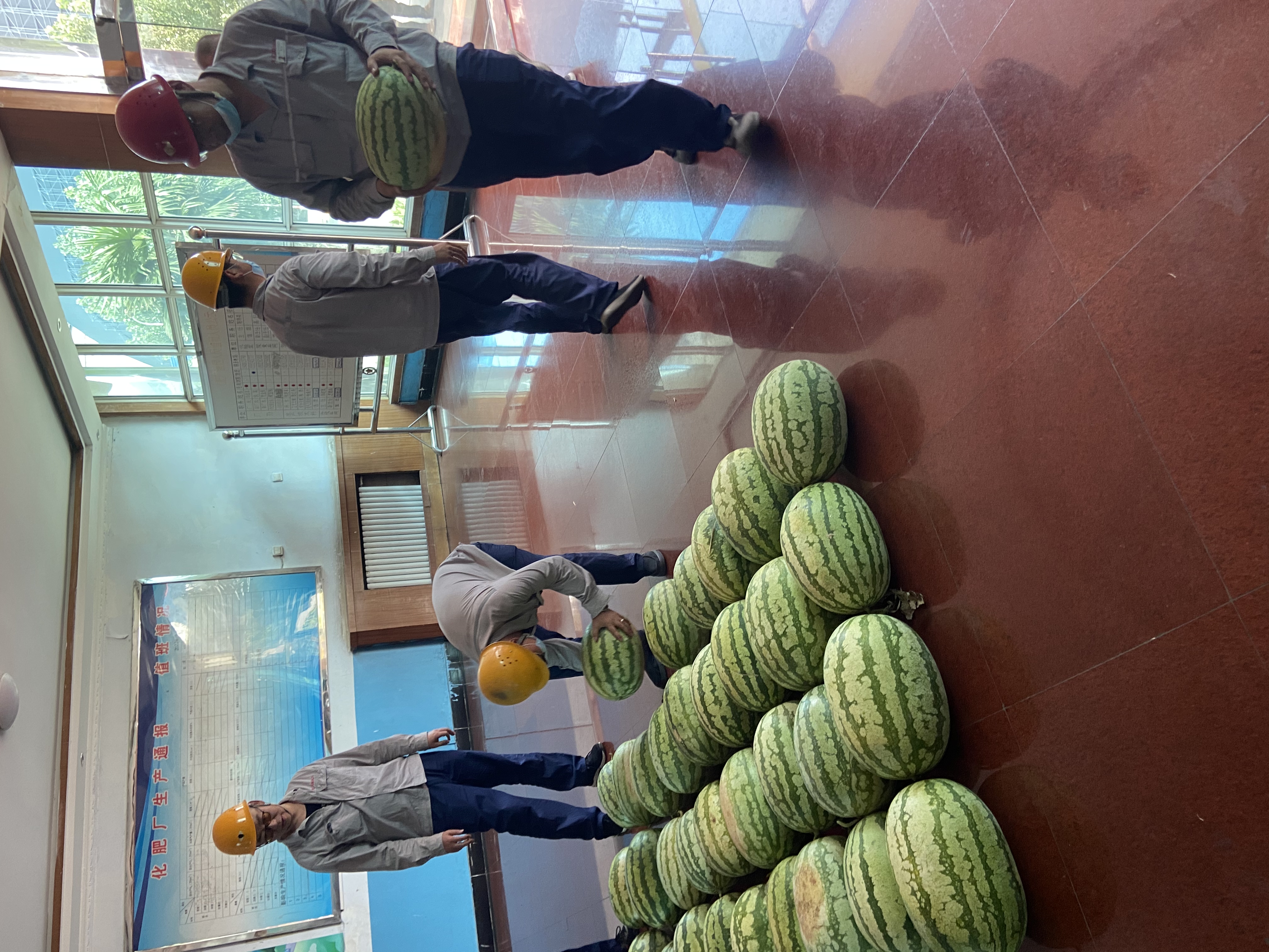 炎炎夏日,驕陽似火。為進一步做好防暑降溫工作,關心員工的身心健康。6月20日下午,龍門煤化工總工程師虎驍、生產副總高炬、董事會秘書高亞龍及工會主席梁國棟等一行4人到各廠一線開展“夏季送清涼”活動,為職工送去了西瓜等防暑降溫品。